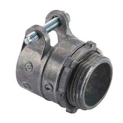 Application: Indoors. In a dry location, use to connect flexible metallic conduit and steel AC cable to a steel outlet box, load center or other metal enclosure.